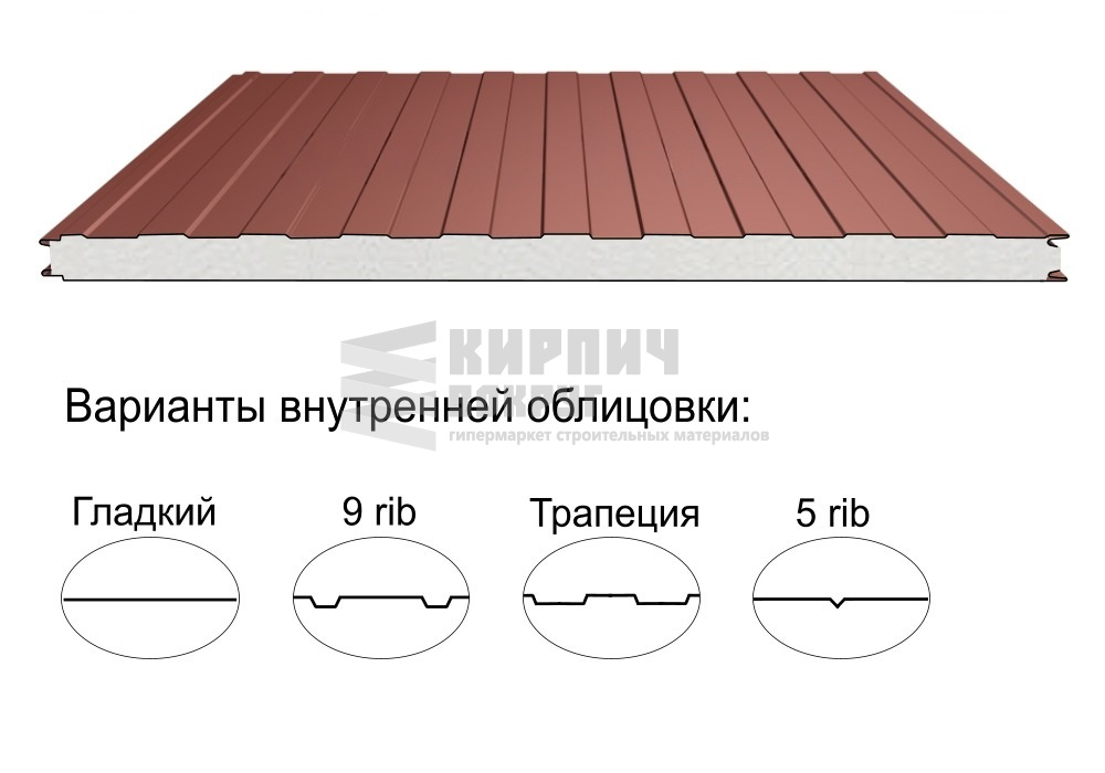 Строительный материал, имеющий трёхслойную структуру, состоящую из двух листов металла и слоя утеплителя между ними.