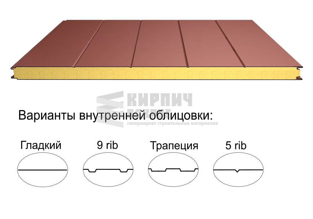 В интернет-магазине "Кирпич Вокруг" Вы можете купить Стеновая трёхслойная сэндвич-панель 5 rib 100мм 1000мм с видимым креплением минеральная вата Полиэстер Доборник в Ангарске, а наши специалисты готовы вам помочь с выбором по адресу: , или оказать консультацию по телефону: .